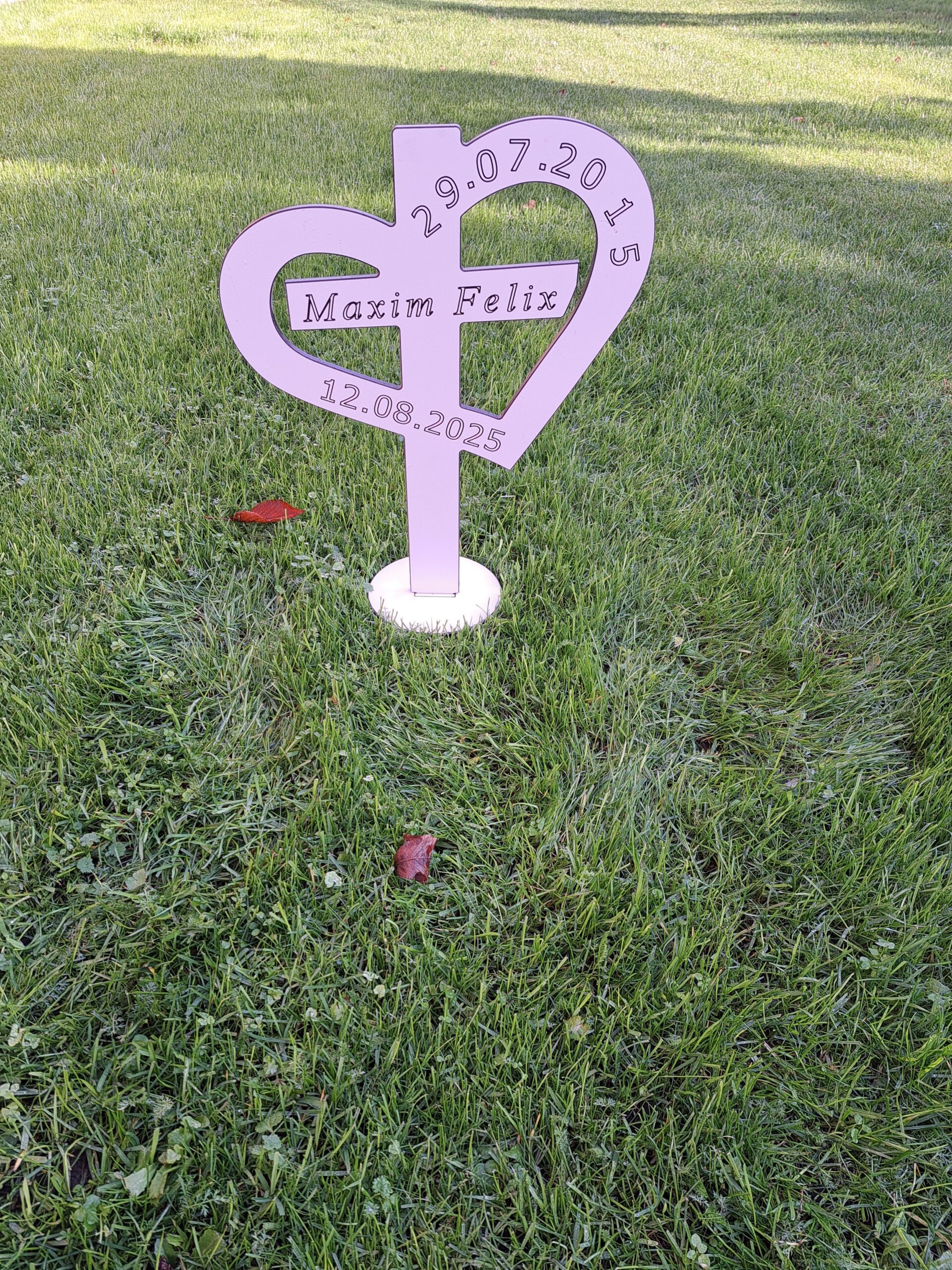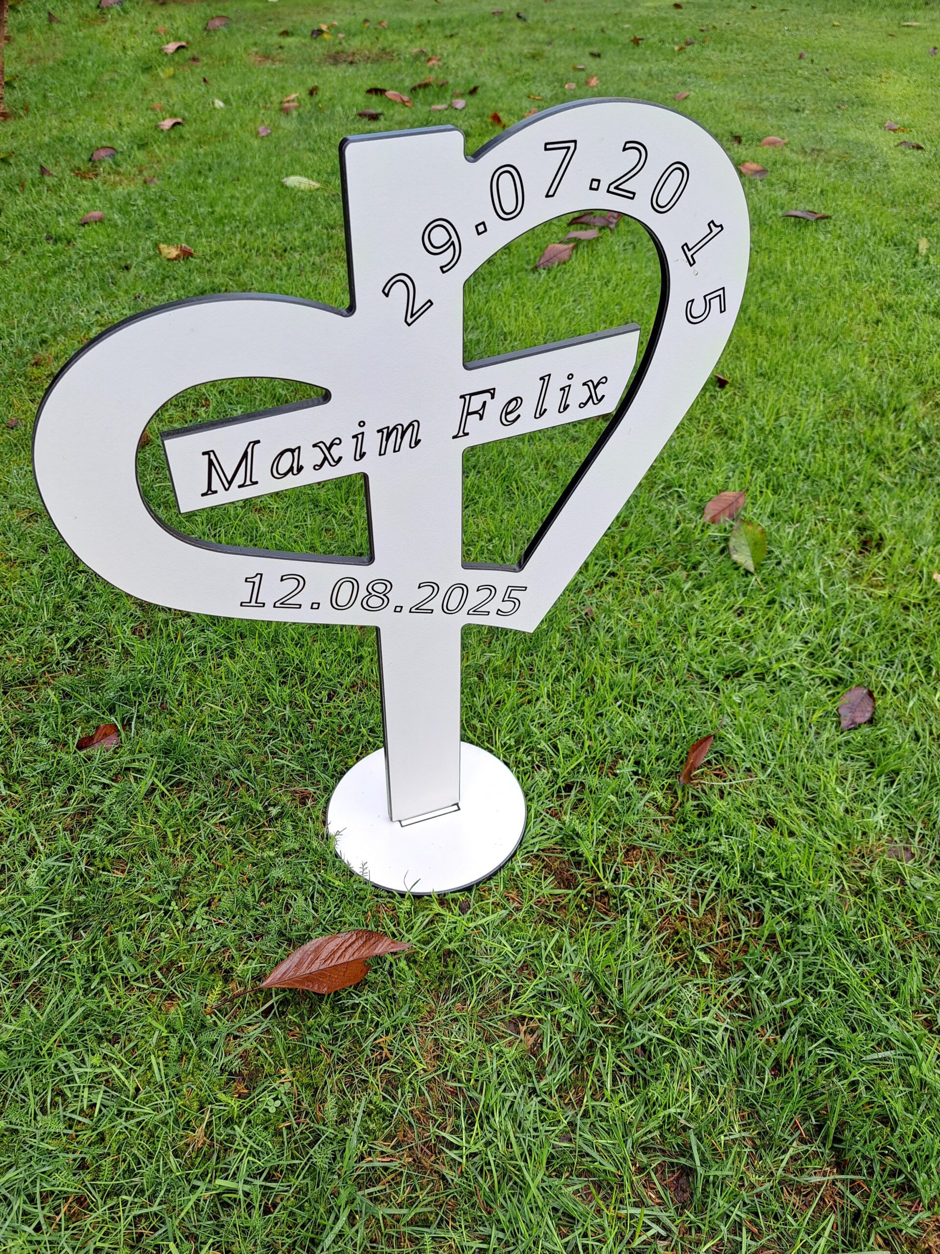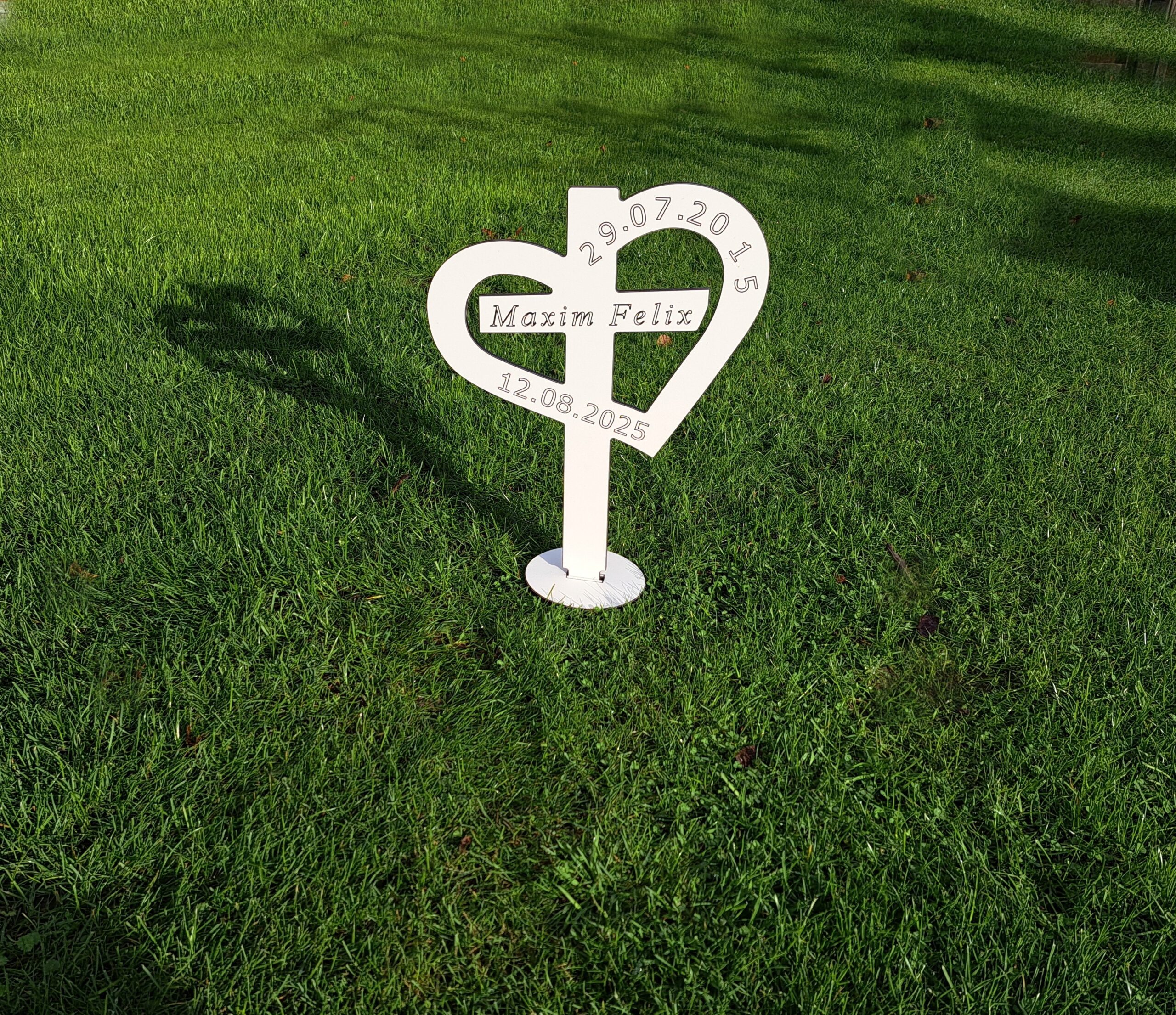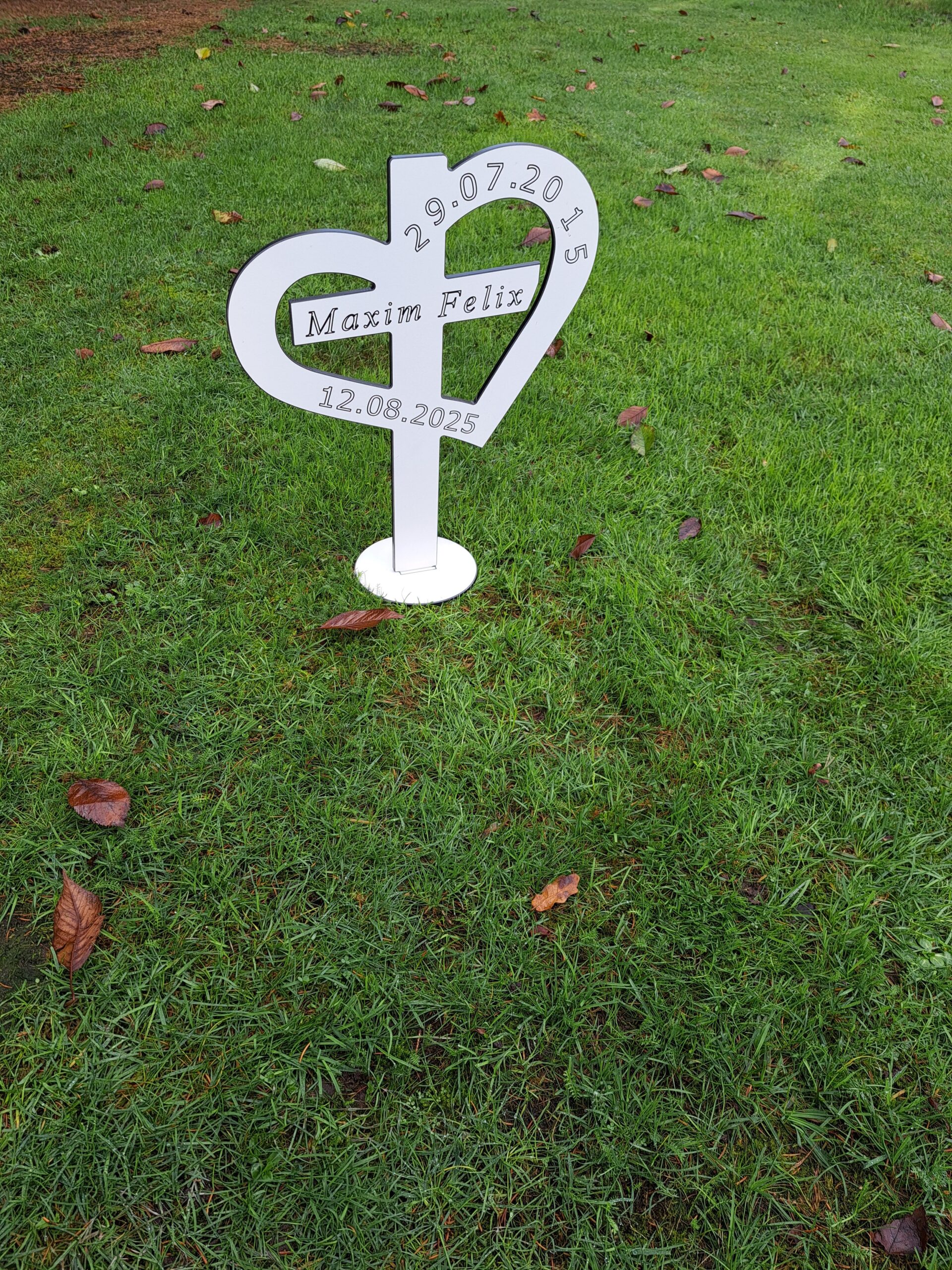 Unsere Gedenktafeln und Grabkreuze sind mehr als nur ein Zeichen des Gedenkens an Verstorbene – sie sind eine liebevolle Erinnerung, die sowohl für Menschen als auch für Haustiere genutzt werden kann. Sie eignen sich hervorragend für den Einsatz an Unfallstellen, als Straßenkreuz oder für private Gedenkorte wie Urnengräber und Baumgräber. Diese besonderen Andenken finden ebenfalls ihren Platz in einem Wald, wo sie den natürlichen Charakter der Umgebung unterstreichen. Die beigefügten Bilder dienen als Musterbilder. Bitte werfen Sie einen Blick auf die Musterfotos und verleihen Sie Ihrer Erinnerung durch die Wahl eines Designs oder einer Gravur, die Ihren Vorstellungen entspricht, eine ganz persönliche Note.