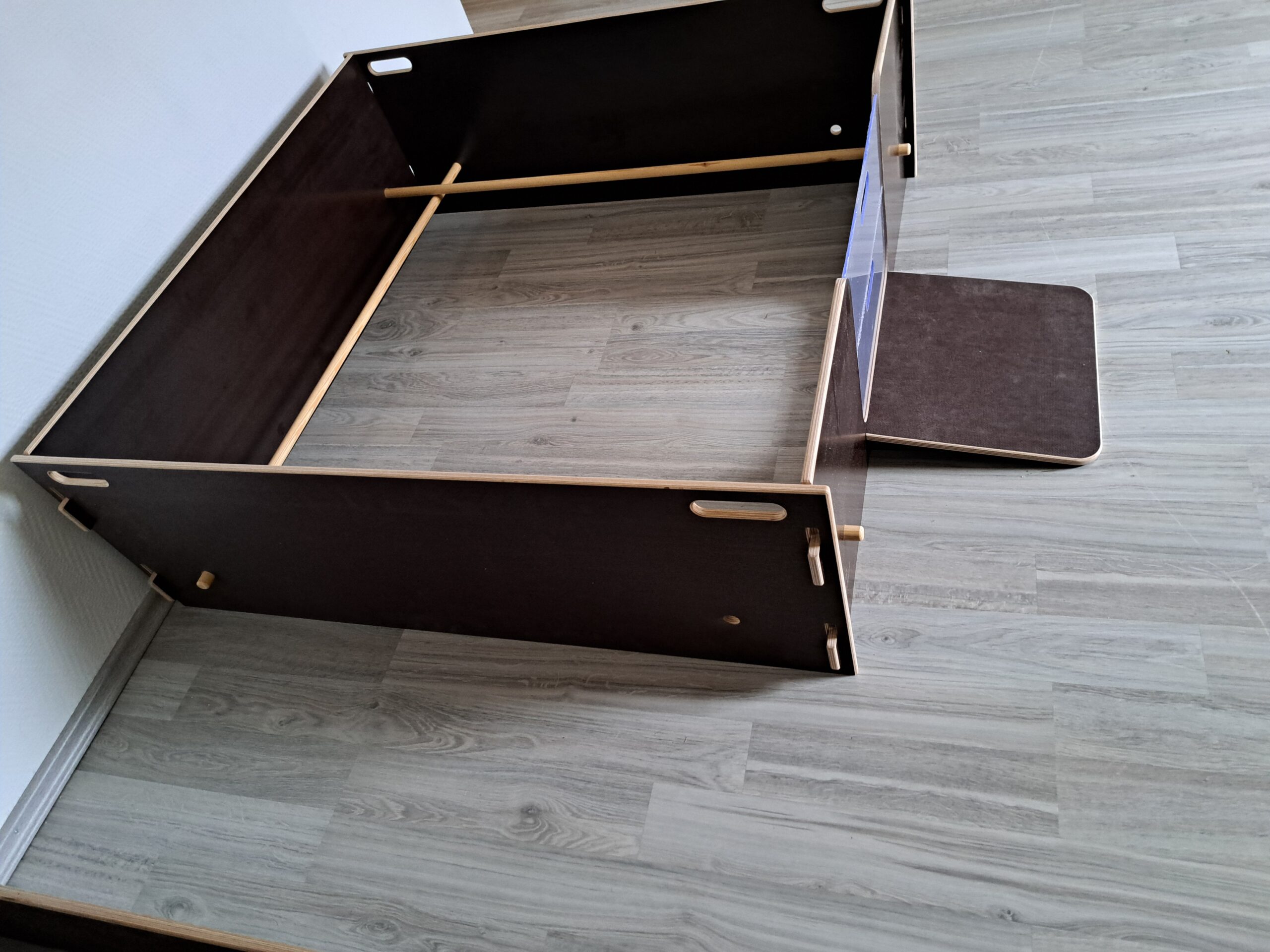 Dank eines durchdachten Stecksystems können die Wände der Wurfkiste ganz ohne Bohren oder Schrauben schnell und einfach zusammengesetzt – und bei Bedarf ebenso unkompliziert wieder auseinandergebaut – werden. Diese Flexibilität macht unsere Wurfkisten besonders praktisch und platzsparend – ideal, um sie bis zur nächsten Wurfzeit ordentlich und sicher zu verstauen.